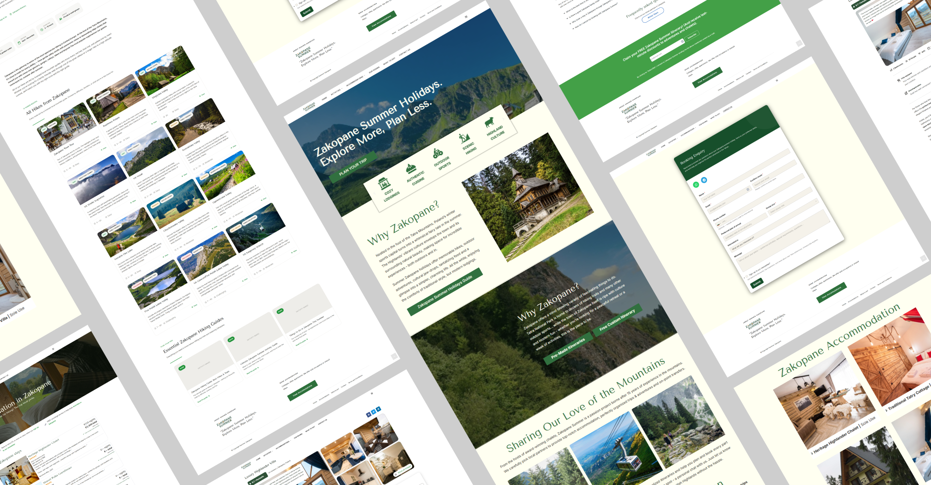 Проектът е разработен като презентационен туристически сайт, целящ да представи Закопане като летна дестинация и да улесни потребителите при резервация на вили под наем. Основната цел е да комуникира ясно офертите и да насочи потребителя към контакт или запитване. Структурата следва класически път на потребителя – от вдъхновение (красиви снимки и активности) към решение (избор на вила и резервация).